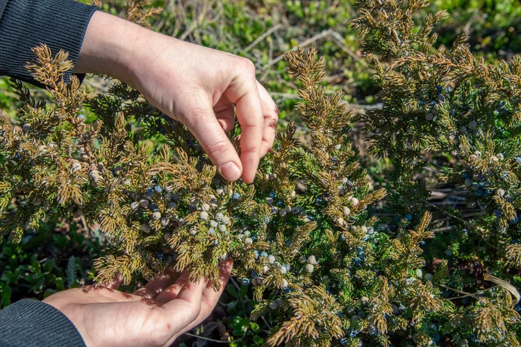 Les baies de genièvre sont le fruit du genévrier, un arbuste de la famille des conifères que l’on trouve principalement en Europe méditerranéenne. Ce buisson pousse à l’état sauvage dans les plaines ainsi qu’en haute altitude. Les petites baies parfumées sont vertes la première année et noircissent lorsqu’elles arrivent à maturité la deuxième année. Chacune d’entre elles contient une pulpe résineuse légèrement sucrée et trois graines au goût poivré. Celles-ci recèlent des glandes oléifères qui se solidifient et deviennent résineuses lorsque le galbule atteint sa maturité. L’huile essentielle est extraite des baies par distillation à la vapeur.