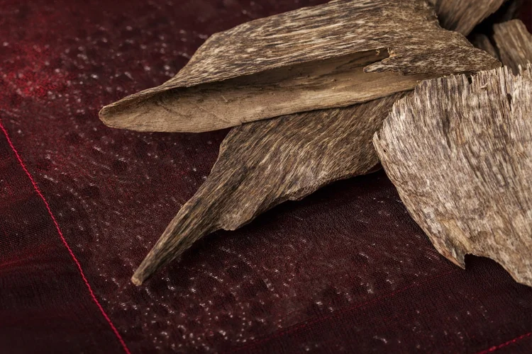 L’oud, également connu sous le nom de bois d’agar, provient d’un arbre rare qui pousse en Inde et dans toute l’Asie du Sud (notamment en Thaïlande). C’est au moyen d’un processus de distillation qu’on obtient l’essence tant convoitée. Toutefois, ce n’est pas aussi simple qu’il n’y paraît : seuls les arbres infectés par un champignon produisent la résine aromatique subtilement parfumée. Et pour compliquer encore les choses, seuls 10 % des arbres de bois d’agar sont adaptés. Heureusement, les humains ont créé des plantations d’oud pour produire artificiellement du bois d’agar infecté par des champignons, grâce à un processus long, mais utile. Les arbres âgés de plus de 4 ou 5 ans y sont percés et infectés du fameux champignon. Ils peuvent aussi être réinfectés, produisant ainsi un rendement d’environ 25 % supérieur. Une fois la résine extraite, les troncs sont recyclés en copeaux de bois et les autres parties des arbres peuvent être transformées en un encens richement parfumé. Grâce à ce processus méticuleux, un seul arbre de bois d’agar produit environ 32 ml d’essence. On comprend ainsi pourquoi le prix de l’oud est si élevé : il coûte environ 15 000 euros par litre (et les variétés plus âgées se rapprochent des 60 000 euros par litre). Outre l’âge, d’autres facteurs peuvent faire varier son prix, comme la couleur de l’essence, sa texture et l’origine de l’arbre. Un bois d’oud de 5 ans exhale un parfum plus intense, plus cuiré et plus brut, des qualités très recherchées par les amateurs de parfums du Moyen-Orient. Les fragrances d’inspiration occidentale, sophistiquées ou luxueuses, sont aussi populaires, et de nombreuses marques européennes font la part belle aux notes de bois d’oud.