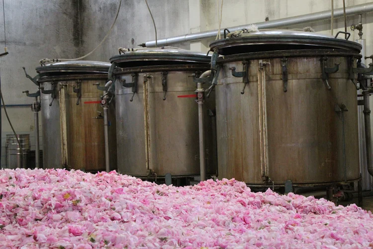 Les roses sont cultivées en masse dans certaines parties de la France, de la Turquie, de la Bulgarie et du Maroc (la vallée du Daddès), dans ce que l’on peut imaginer être les plus belles régions du monde. Mais toutes les roses ne se retrouvent pas dans nos parfums préférés. Elles sont classées en deux grandes catégories : les roses ornementales, cultivées pour leurs qualités esthétiques, et les roses parfumées, très convoitées, qui suscitent l’intérêt des parfumeurs. Parmi les 5 000 variétés botaniques de roses connues, seules deux sont utilisées en parfumerie : la Rosa Centifolia et la Rosa Damascena. La Rosa Centifolia, une fleur sans épines cultivée à Grasse, est considérée comme ayant une odeur plus « délicate », extraite à l’aide de solvants pour obtenir une absolue. Bien sûr, cette note florale divine est entourée de mystère : depuis quelque temps, sa production est tenue secrète. Mais les qualités olfactives de la Centifolia sont si puissantes que les maisons de parfumerie de prestige continuent à l’utiliser. De son côté, la Rosa Damascena (ou rose de Damas), produite en Turquie et en Bulgarie, est la seule rose connue à exister sous forme d’essence. Et ce n’est pas tout : elle est considérée comme l’une des plus riches et des plus veloutées qui soient. Son essence est obtenue par un processus de distillation, au cours duquel les fleurs sont cueillies à la main à l’aube et traitées rapidement pour éviter toute fermentation.